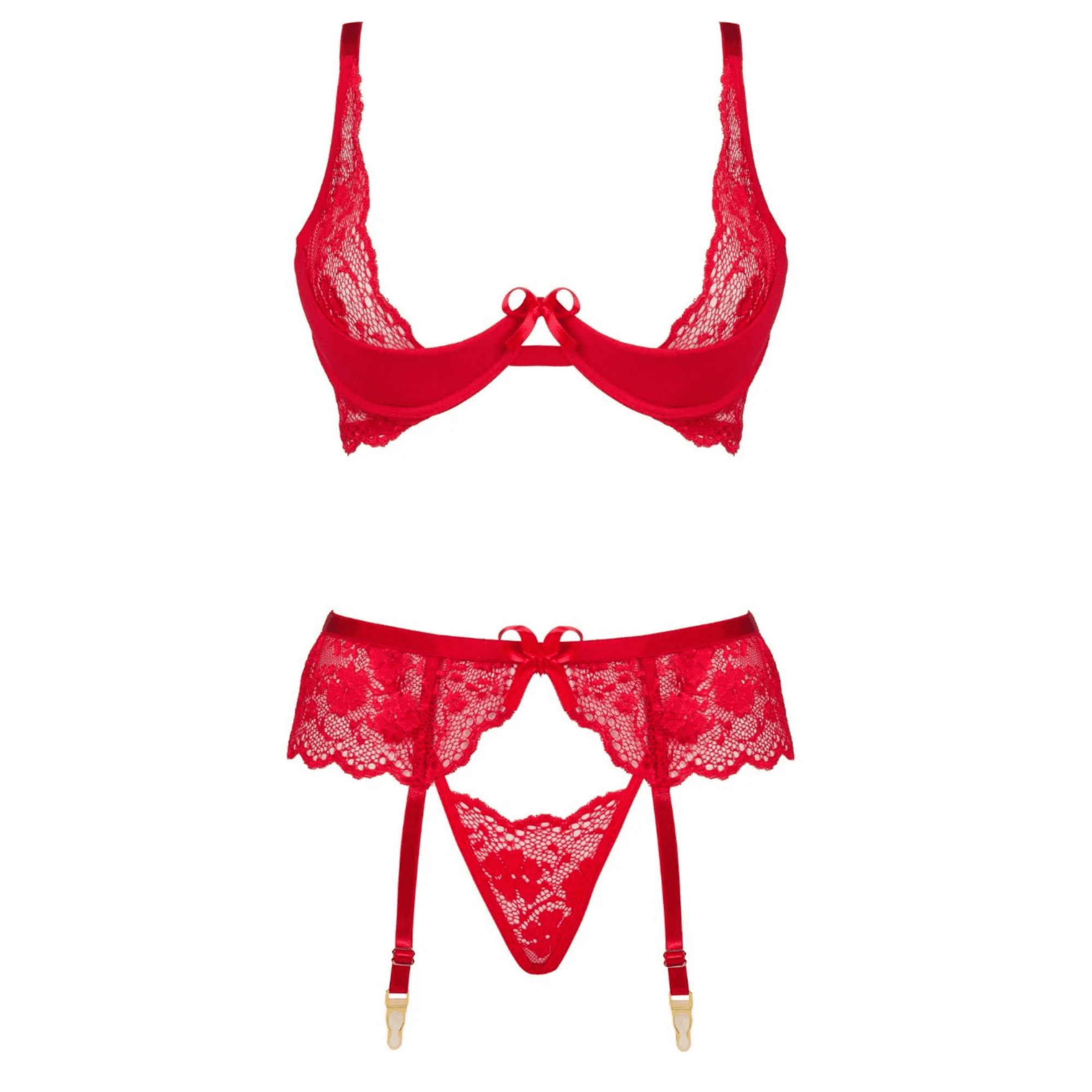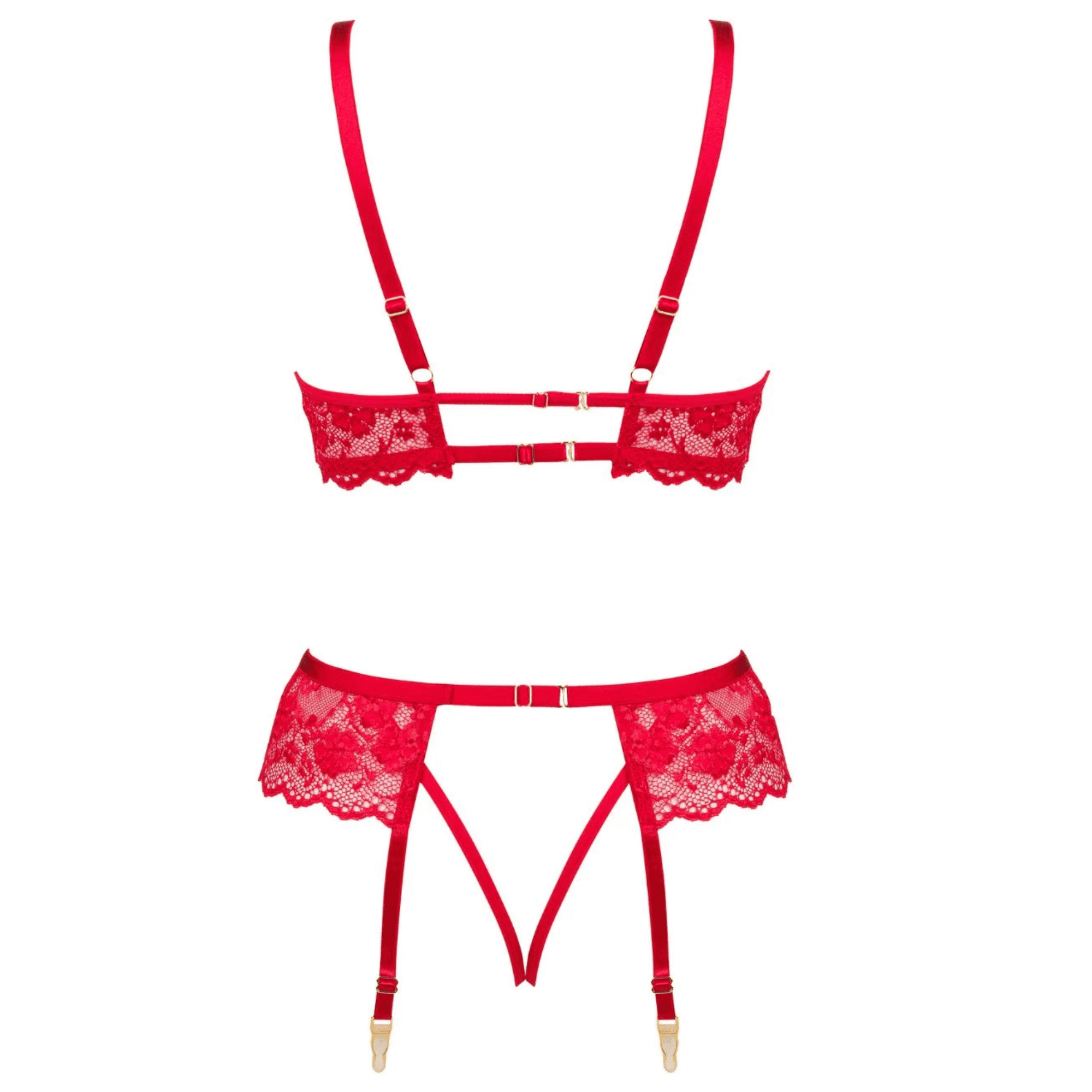 Featuring a soft underwire bra for gentle lift, a smooth matching thong, and an adjustable garter belt, each piece is designed to contour beautifully without restriction. Fine lace textures and refined finishes create a look that feels sensual yet timeless.